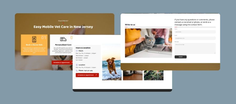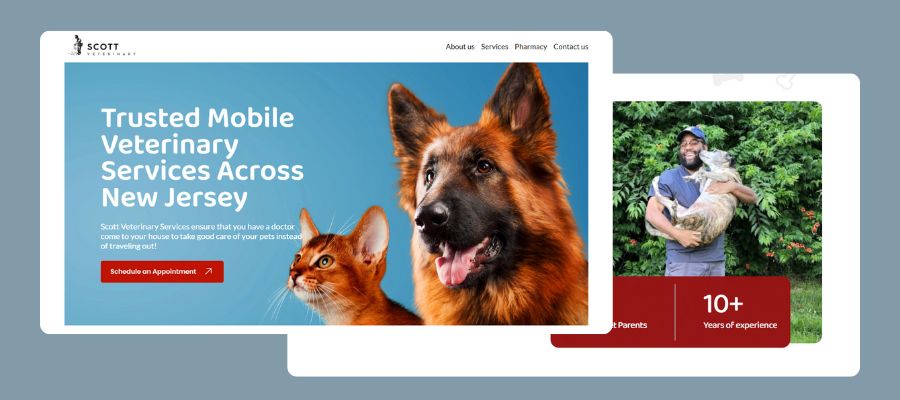 Scott’s Veterinary provides mobile vet care and wellness services directly to families across New Jersey. They needed a modern website to simplify appointment scheduling, highlight their services, and build trust with pet owners who value convenience, care, and professionalism.